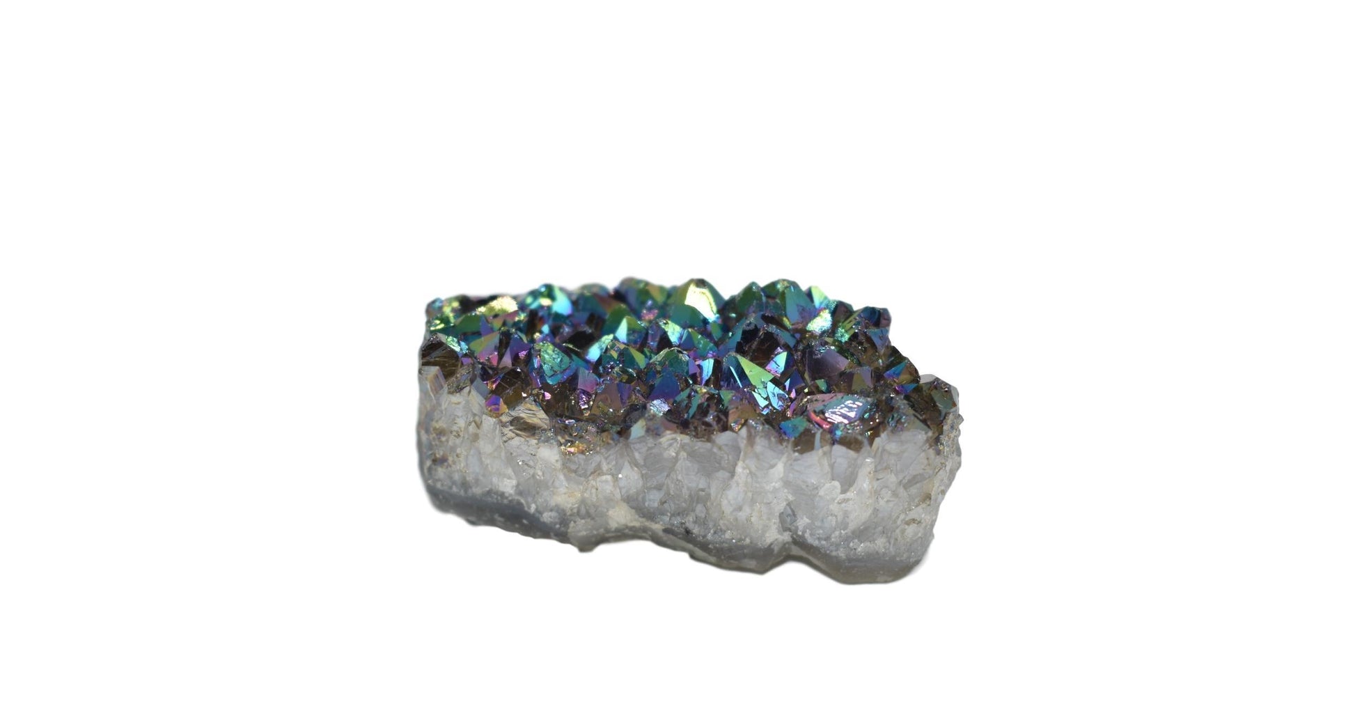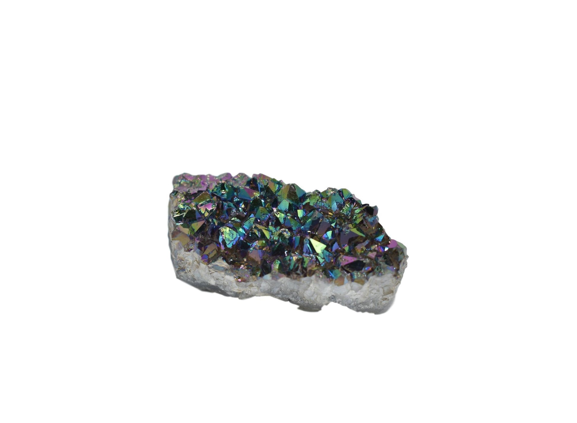 This amethyst is coated in metal that gives off a vibrant luster. This small metalized amethyst specimen makes for a brilliant statement piece in your home, helping to create balance and harmony. An eye-catching piece that is sure to make a statement and is the perfect addition to your gemstone collection.